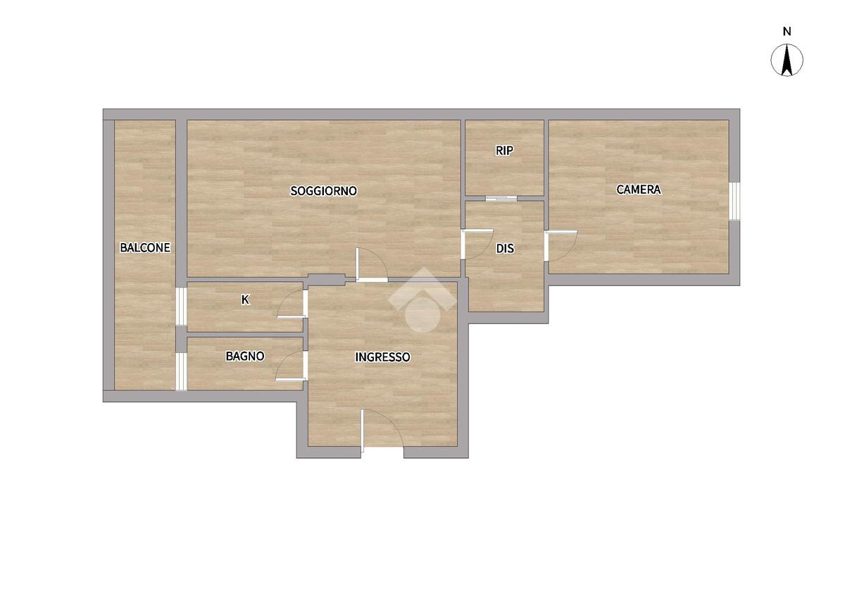 L'appartamento è composto da ingresso su disimpegno, cucina abitabile, soggiorno con balcone, camera da letto matrimoniale, bagno finestrato. Presente comodo ripostiglio.