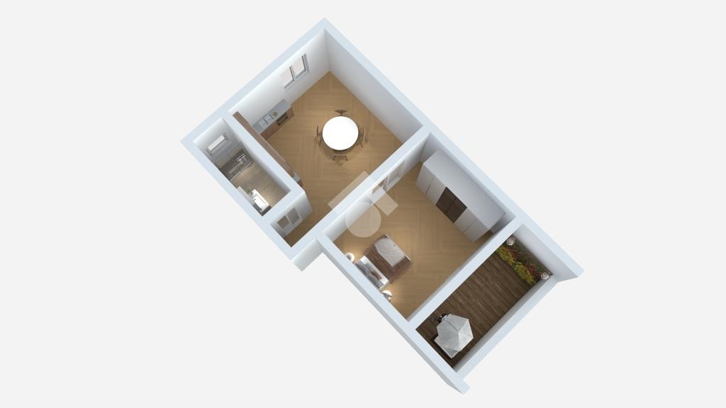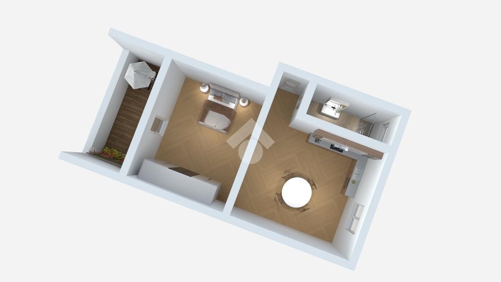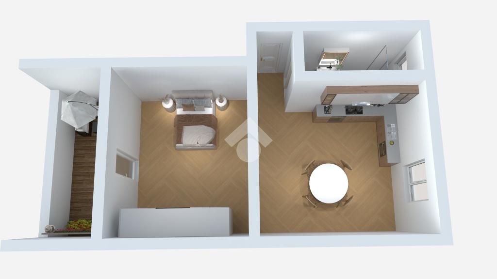 L’ appartamento risulta molto luminoso grazie alla sua doppia esposizione e si compone di una zona giorno con cucina a vista, bagno finestrato con box doccia e camera da letto matrimoniale.