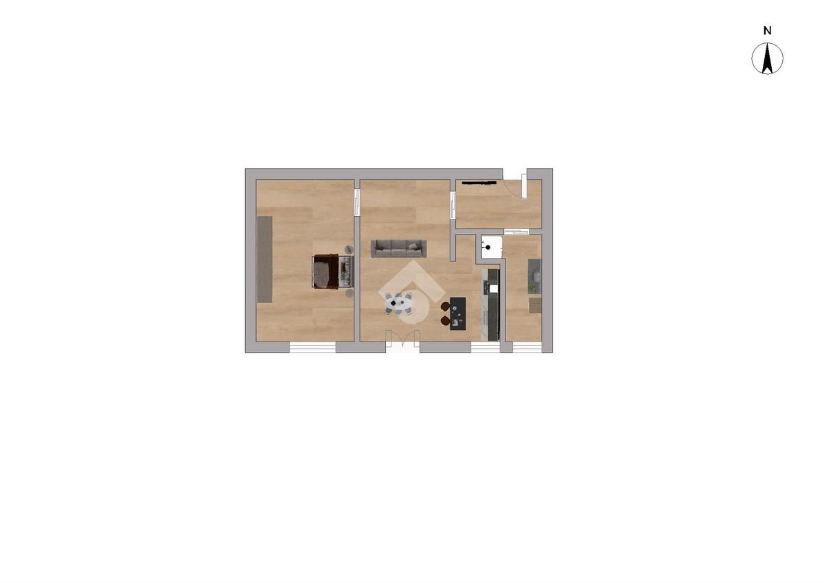 L'appartamento si presenta completamente ristrutturato, pronto per essere vissuto ed è così composto: piccolo ingresso, soggiorno con cucina a vista moderna, spaziosa camera matrimoniale e bagno finestrato con box doccia.