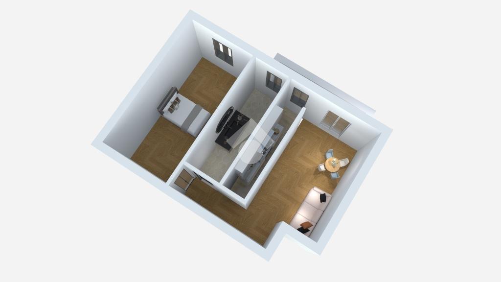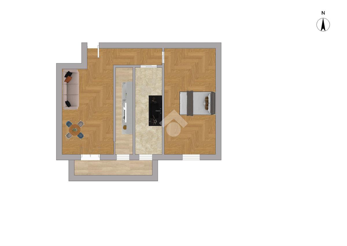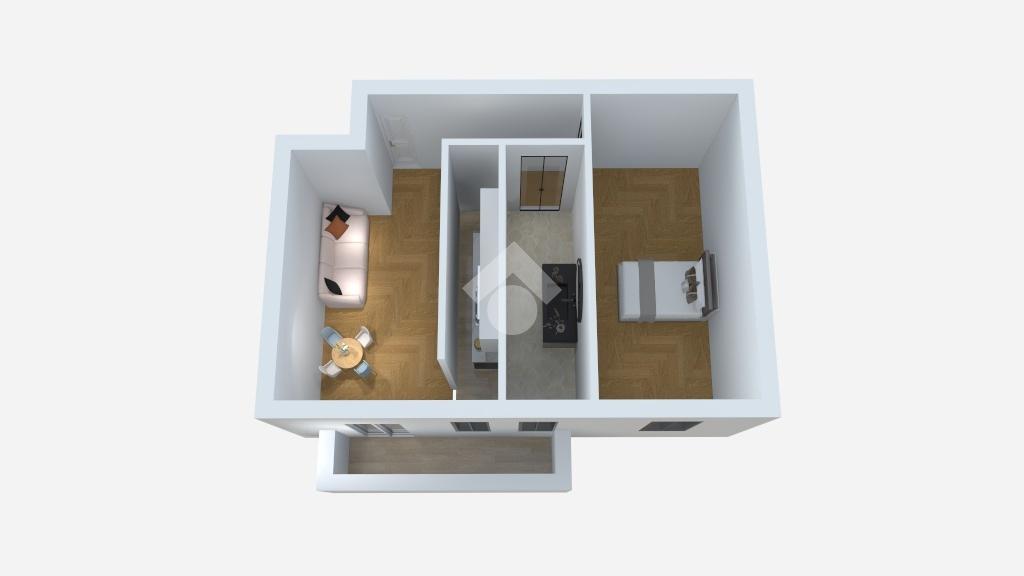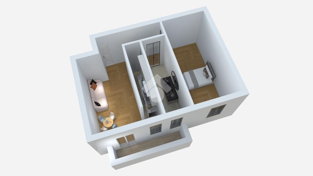 L’appartamento è così suddiviso: ingresso su zona giorno con cucina a vista ed accesso al balcone, proseguendo troviamo una camera da letto e bagno finestrato.
