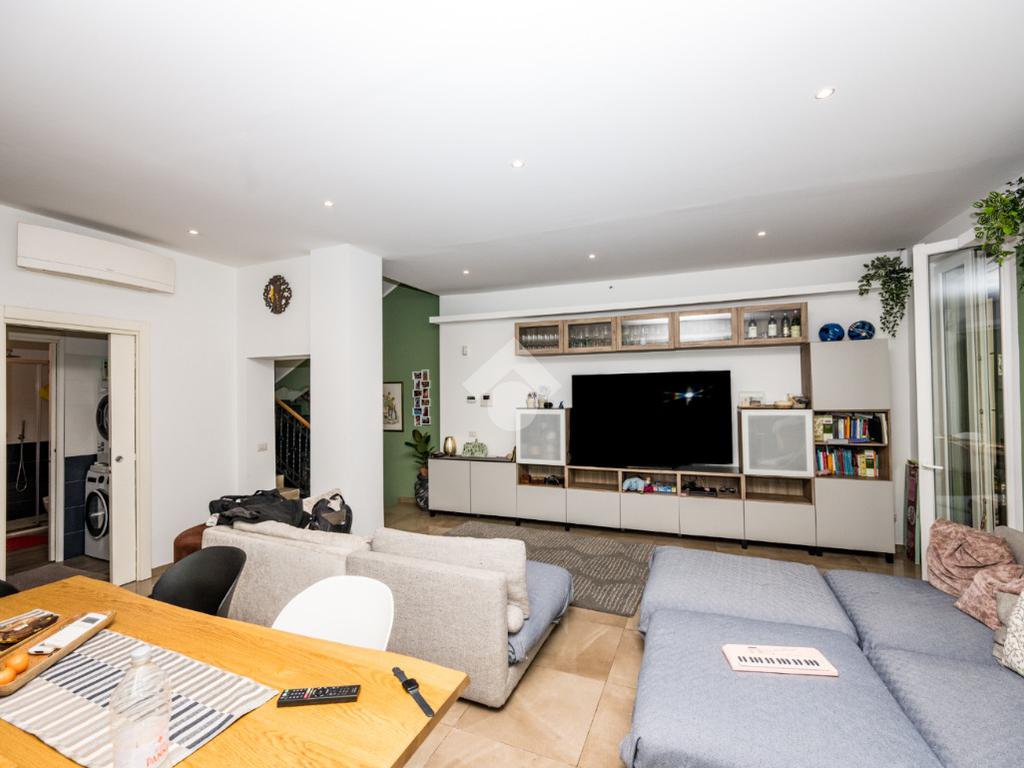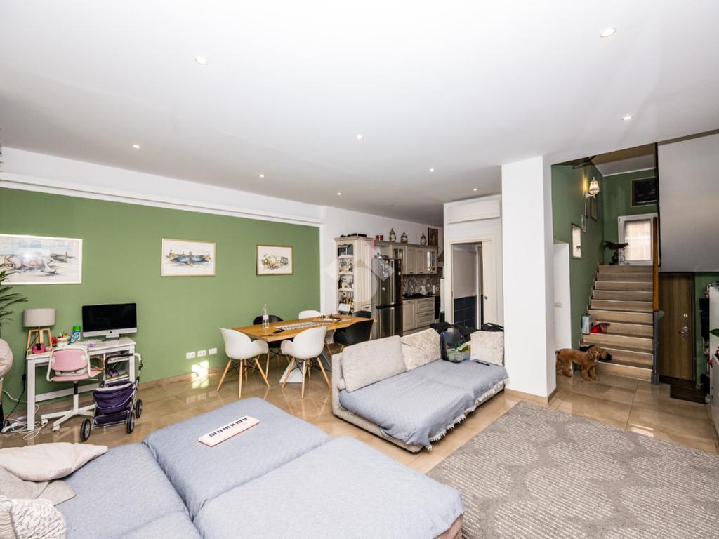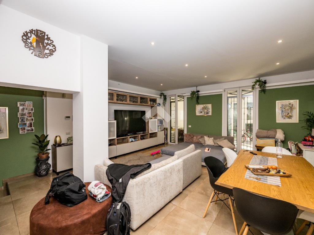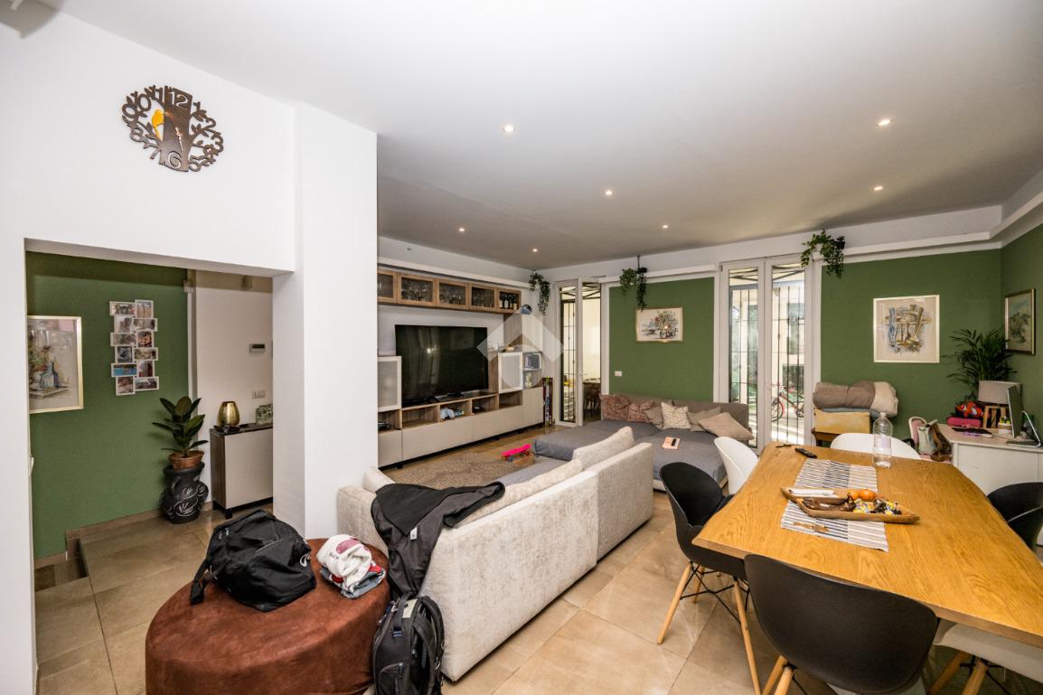 La soluzione si presenta su TRE LIVELLI con soffitti alti più di 3m ed è caratterizzata da: Ingresso al piano terra dove troviamo un'ampia e accogliente zona living con accesso al giardino privato di 100mq con un magnifico patio, cucina, zona lavanderia e primo ampio bagno finestrato.